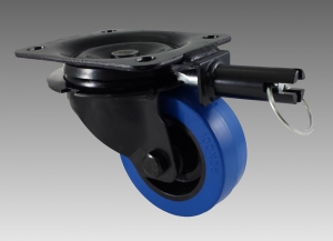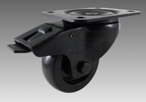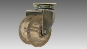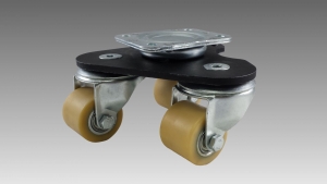 Kotačići za uredske stolice s mekom gumom za osjetljivo tlo, plastično kućište i opružna kočnica (kotač blokira, kada stolica nije opterećena) Premjer kotača: 50mm Širina: 2x10mm Ukupna visina: 60mm Nosivnost: 40kg Klin za kočenje: 10x22mm
