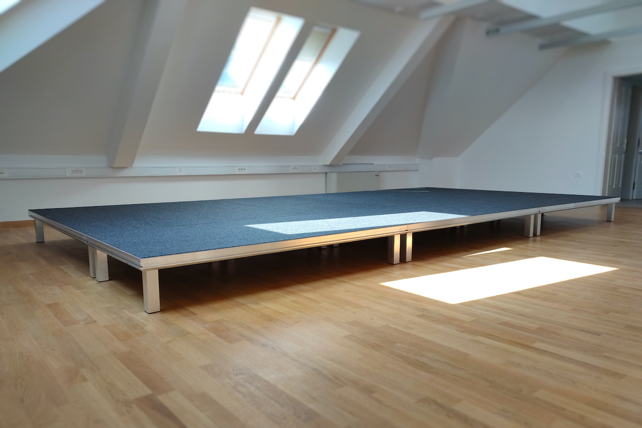 Doprinijeli smo s 9 jedinica naše najlakše pozornice – Super Light za tavanske prostore. Stoje na umetnutim fiksnim nogama visine 30 cm.