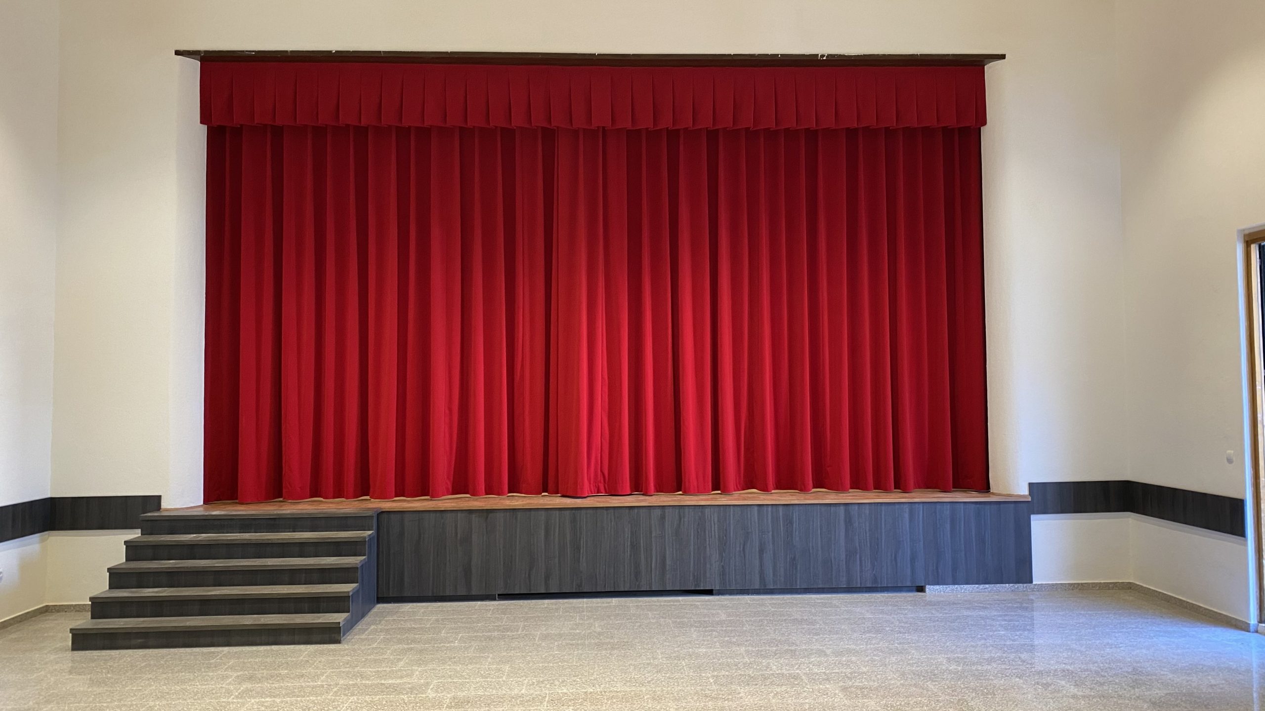 U župi Trebnje potpuno novim zavjesama osuvremenili smo jednu od njihovih dvorana. Izrađene su u našoj šivaonici u Ljubljani. U ovom projektu koristili smo baršun pod nazivom Barcelona. Glavna zavjesa je široka 9 m i visoka gotovo 5,0 m. Posebno je izrađen i rub za pljesak.